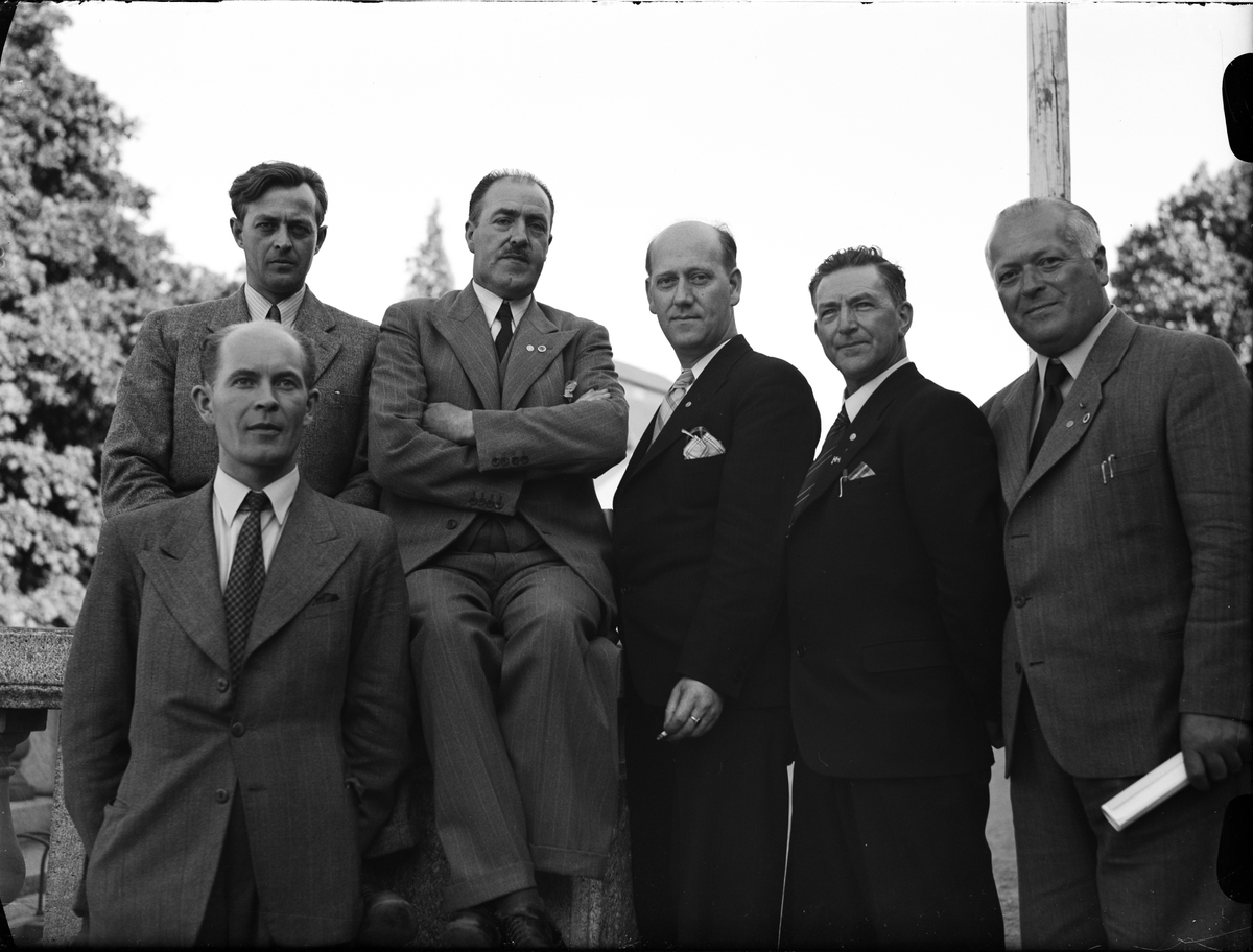 Grupporträtt med män, sannolikt i Uppsala, juli 1946