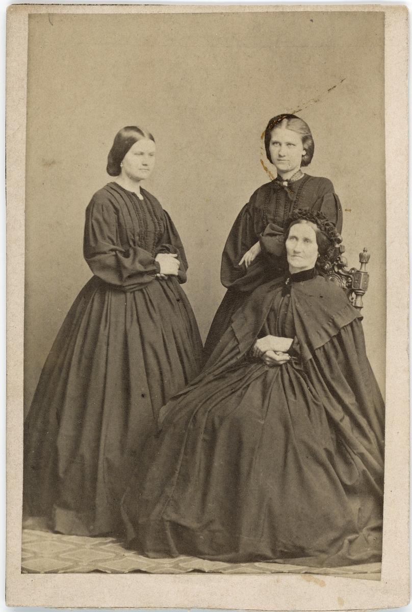 Kabinettsfotografi - Carolina Offrell med döttrarna Anna och Hedvig, Uppsala 1860-tal