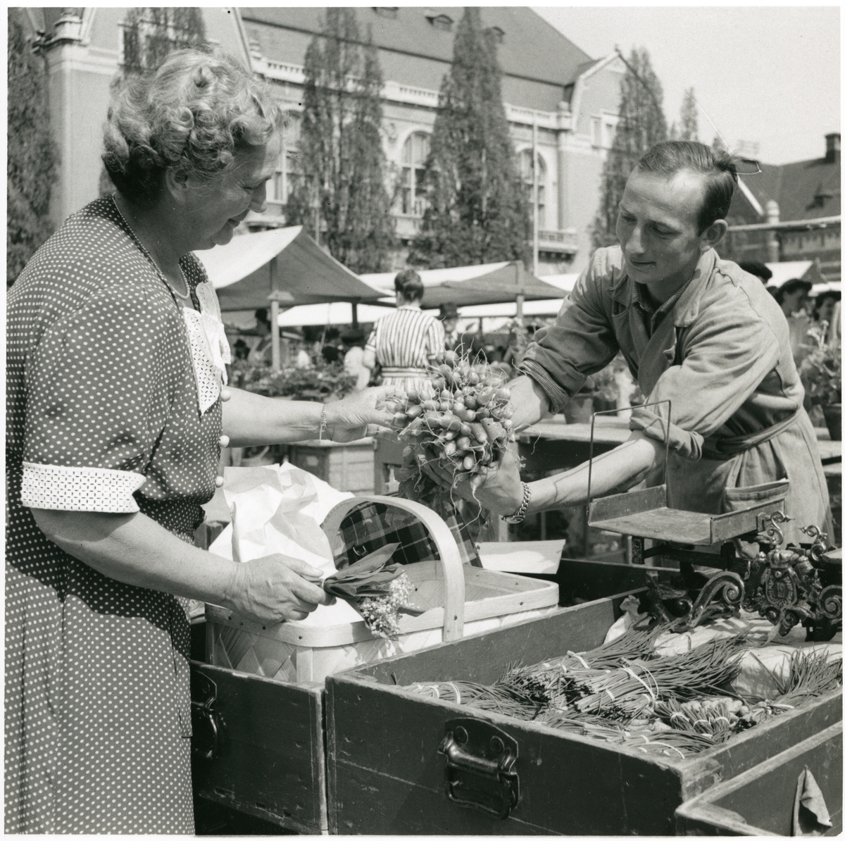 Försäljaren Per Åke Åkerlind på Stora torget 1947.