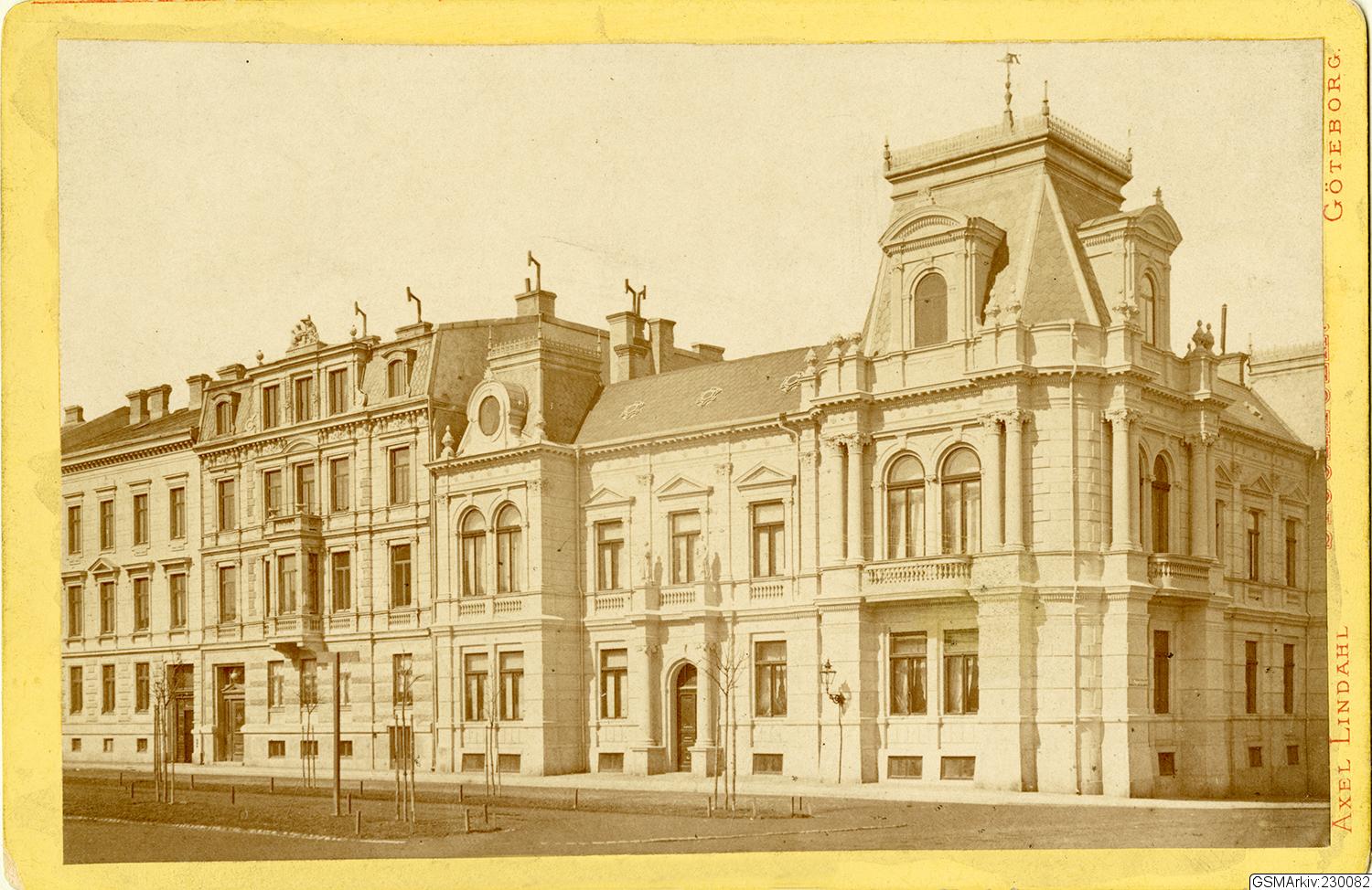 Bostadshus Vasagatan från vänster till höger, nr 12, 14 och 16. Till höger går Viktoriagatan.