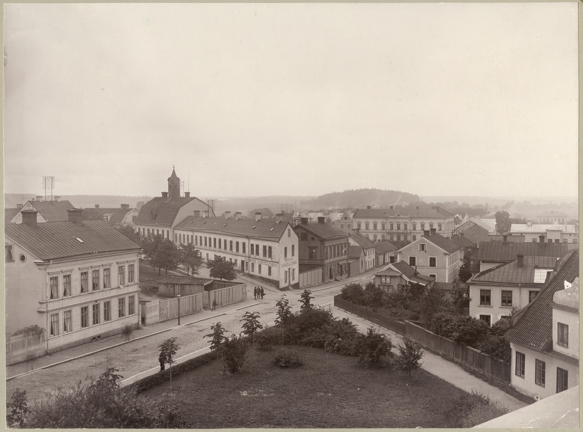 Enköping. Kyrkogatan och Trekanten - nuvarande Afzelii Plan, Enköping, vy från tingshustornet, ca 1896-1897.