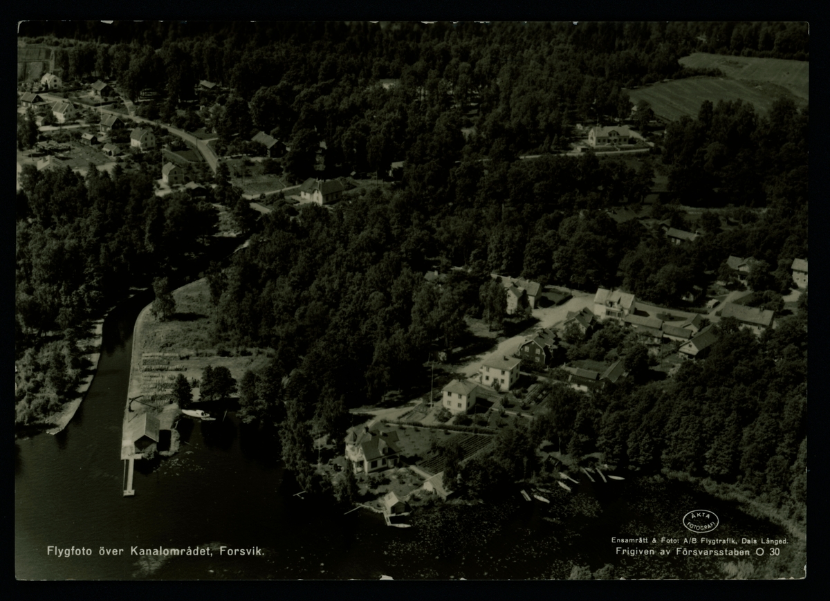 Vykort: Flygfoto över Kanalområdet, Forsvik.