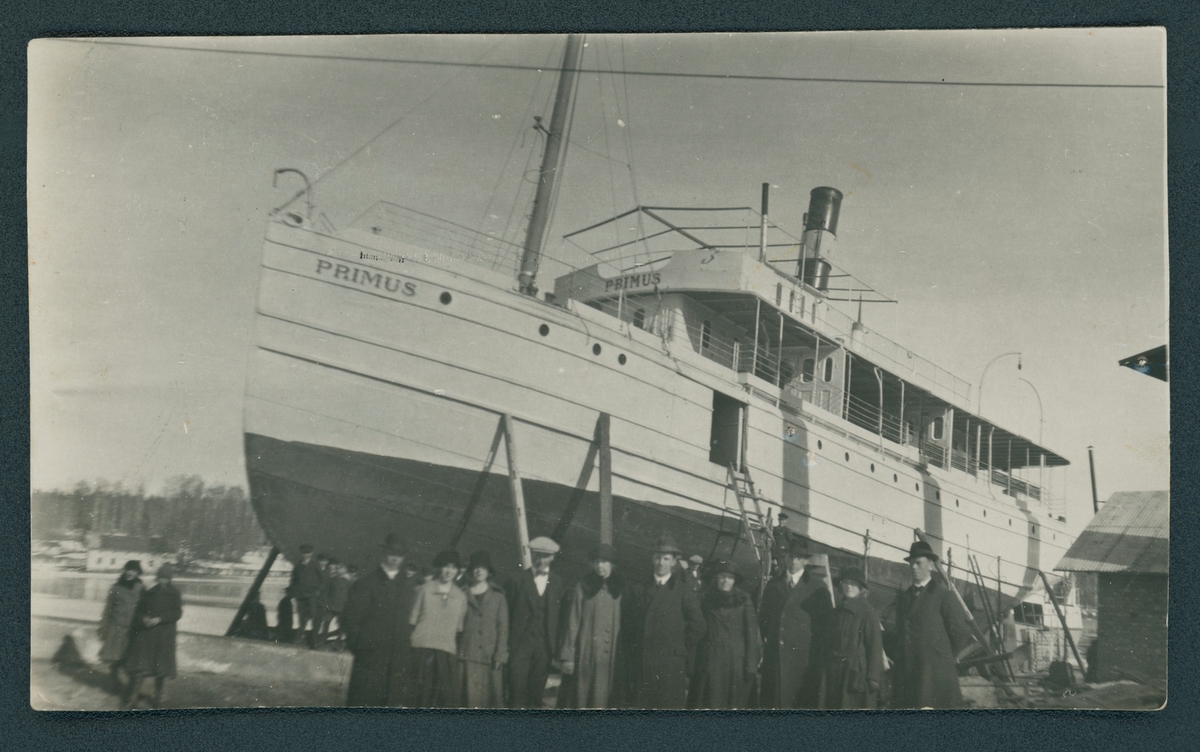 Vykort: Varvet på Forsviks bruk. Kanalångaren Primus på slipen.