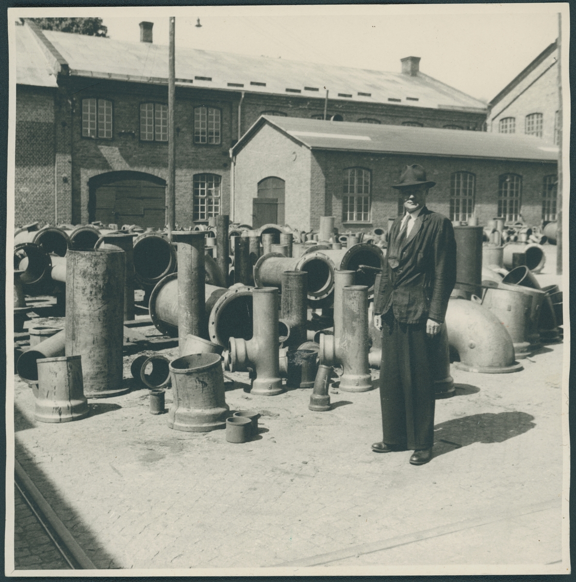 Lars Bergman på verkstadsgården, Forsviks bruk. Lars Bergman, bruksingenjör och platschef (1948-1960).