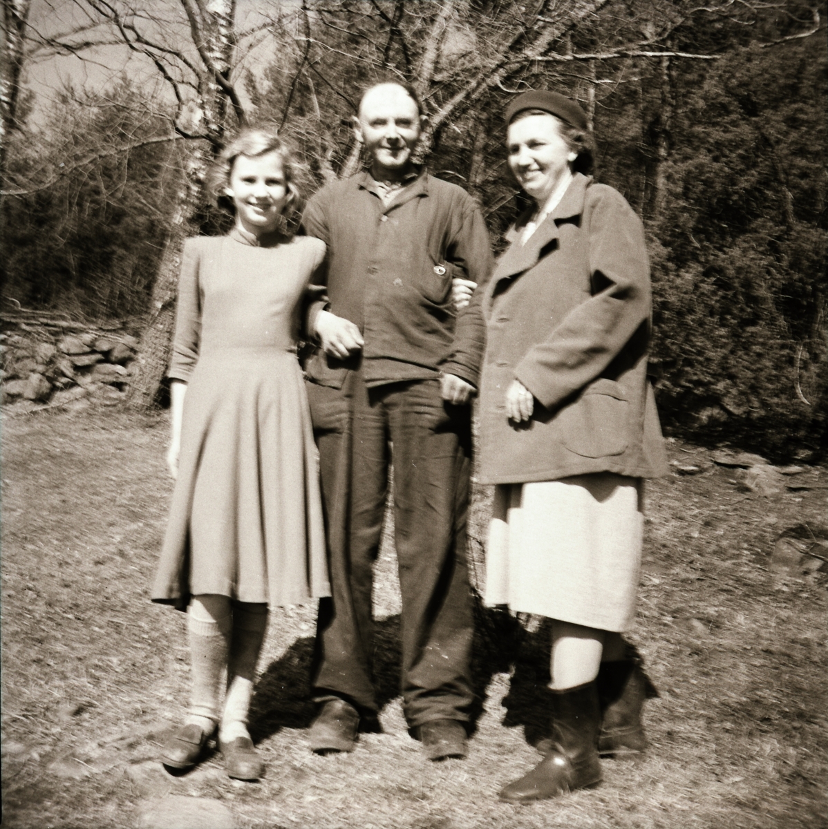 Fotografen själv utomhus mellan Linnea Molin till höger och en flicka.