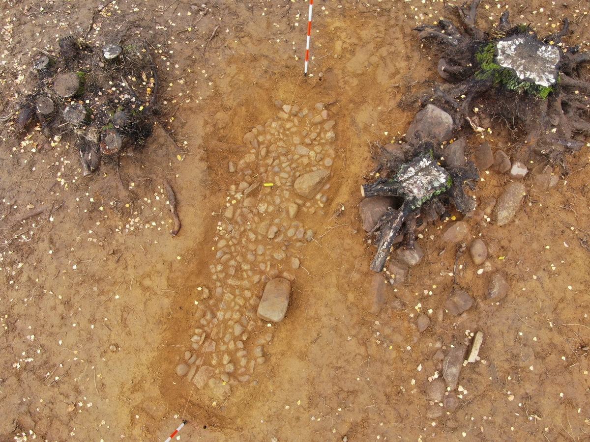 Den överliggande stensättningen. Undersökning av grav i Råslätt, Jönköpings socken.