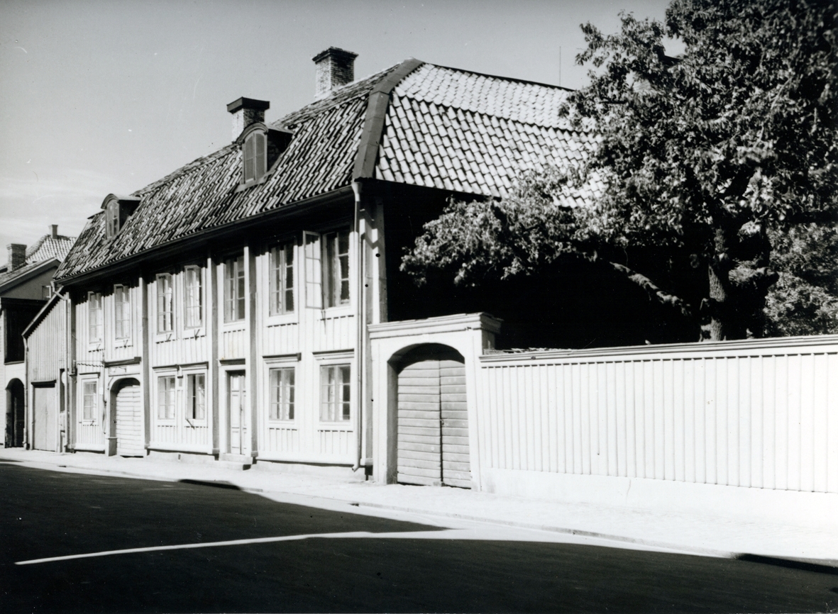 Kreugerska huset på ursprunglig plats; fasad och plank mot Östra Sjögatan.