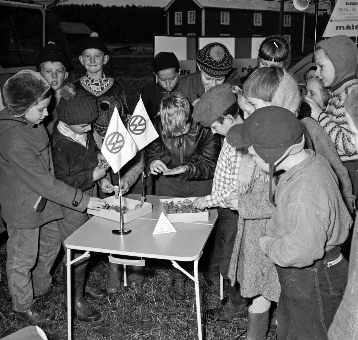 Bil & Buss, en grupp barn samlade runt ett bord med leksaks-Volkswagens