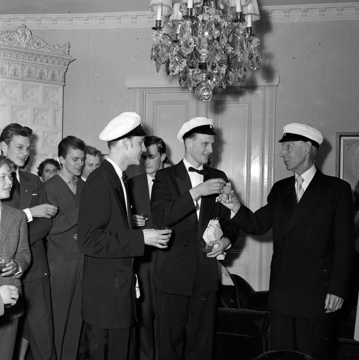 Studentfirande, bröderna Åhman skålar med tandläkare Åhman