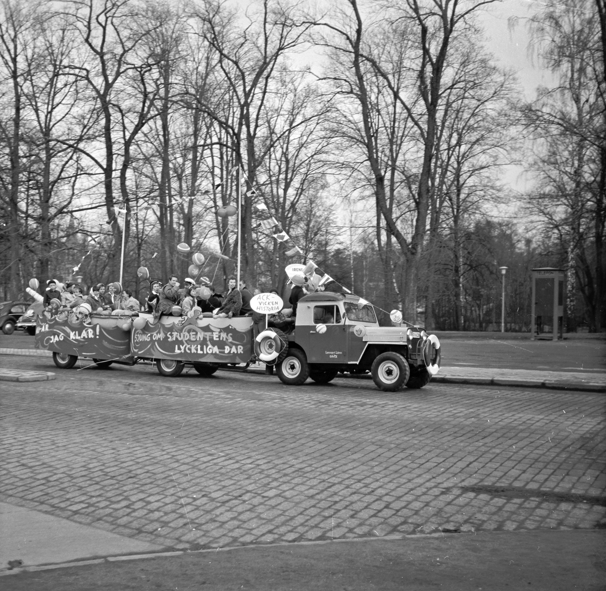 Studentfirande, Irene Östberg på studentflak som efterliknats en båt på havet