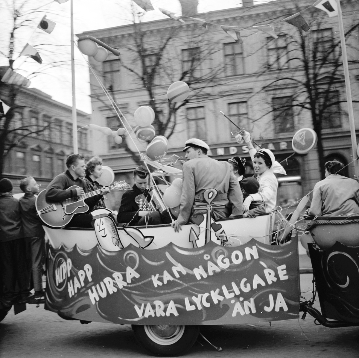 Studentfirande, Irene Östberg på studentflak som efterliknats en båt på havet