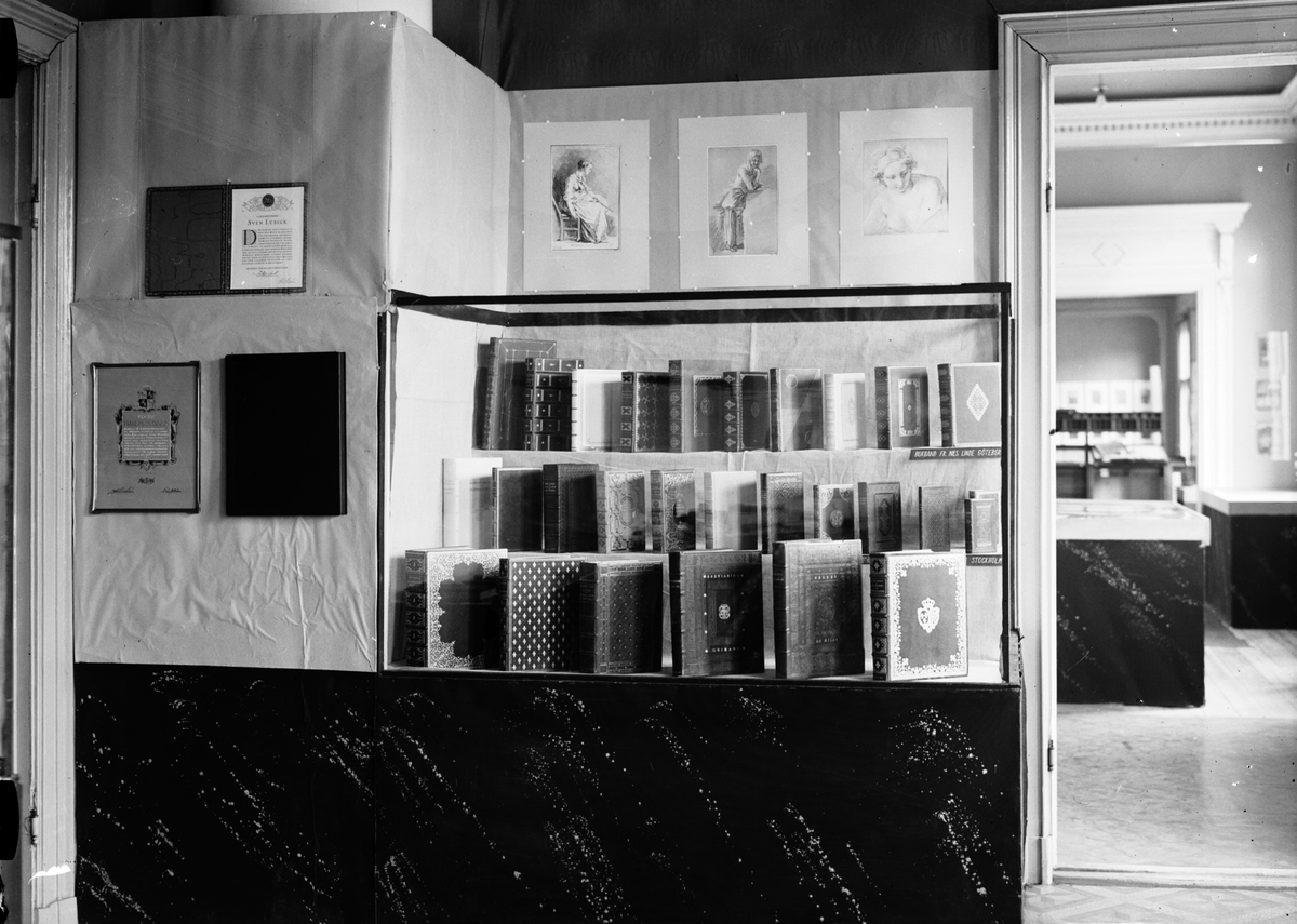 Bokmässa. Glasmonter med böcker.