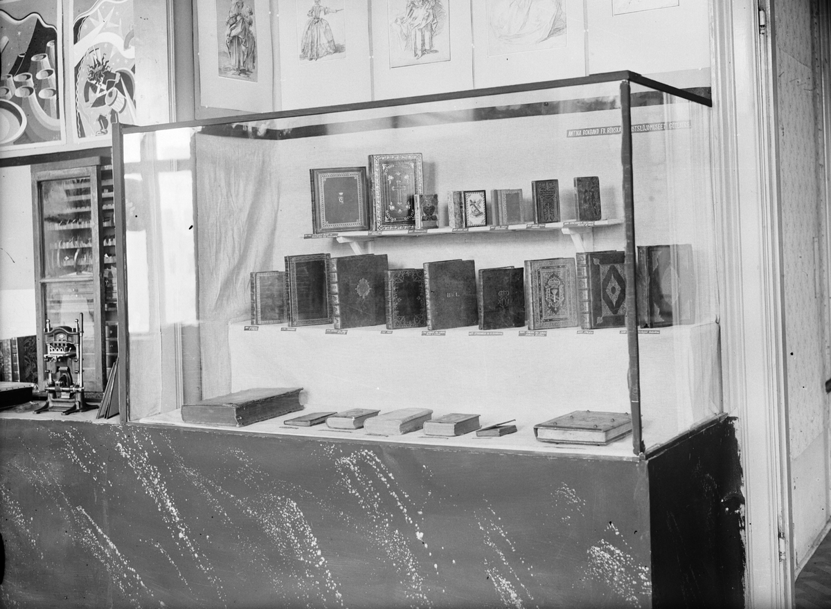 Bokmässa. Glasmonter med böcker.
