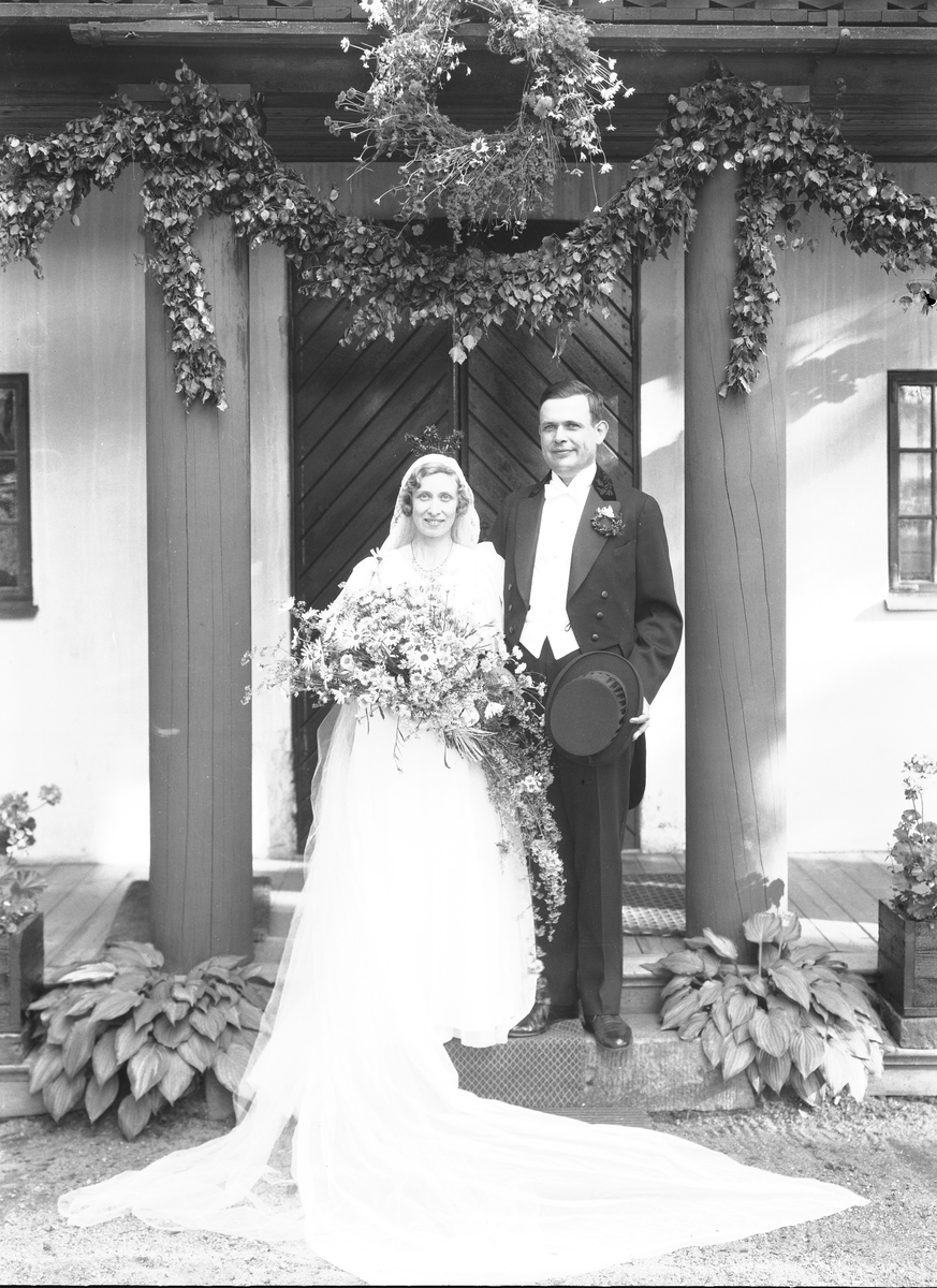 Brudparet Grundell och Naenfeldt utanför bostaden.