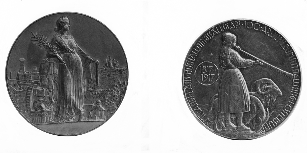 Skriv- & Ritboksaktiebolaget. Medaljong. Jämtlands läns hushållningssällskaps 100-års jubileumsutställning i Östersund. 1817 - 1917.