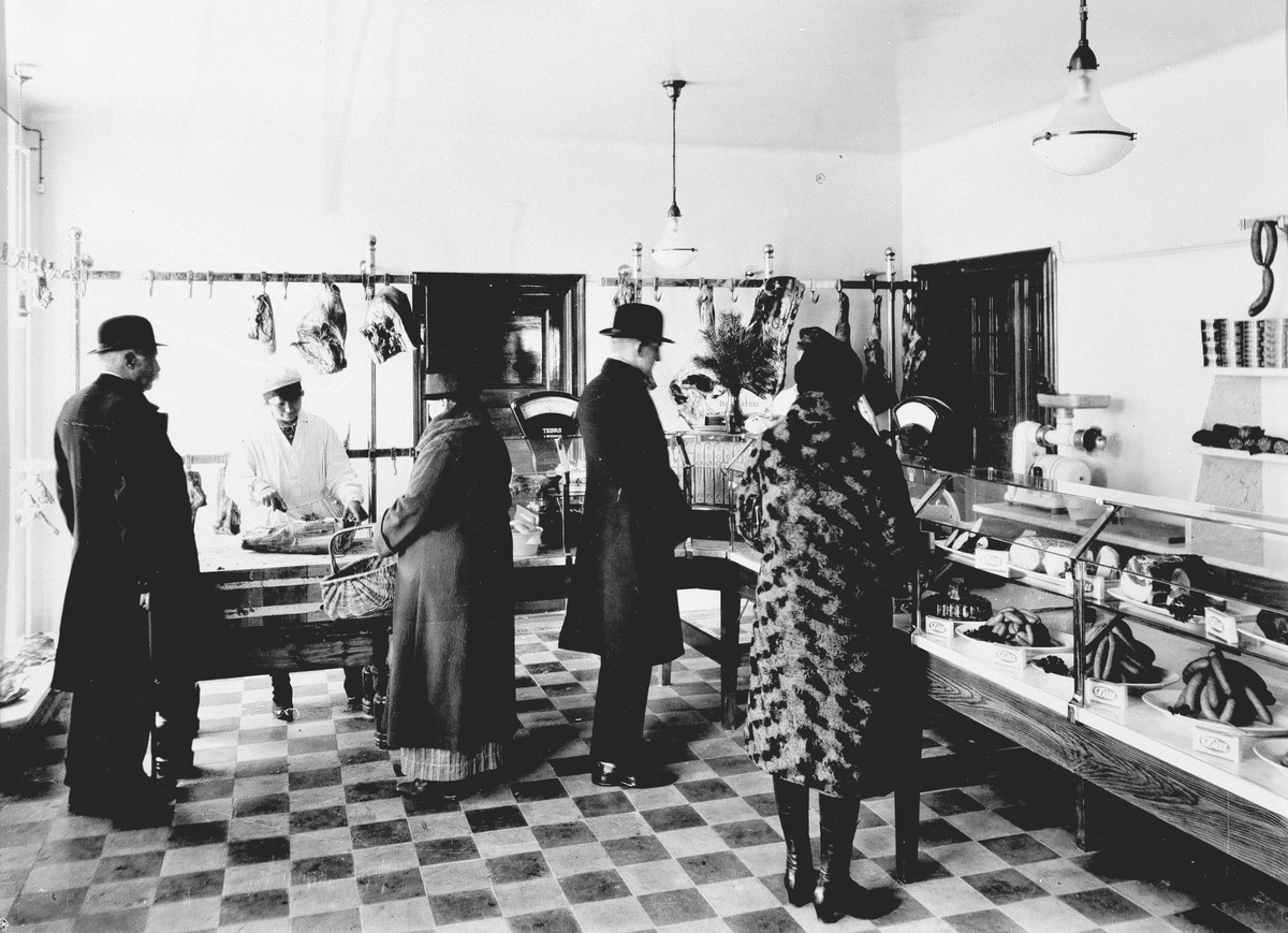 Edvard Lindbloms Charkuteri. Hörnet av Drottninggatan / Norra Kungsgatan
