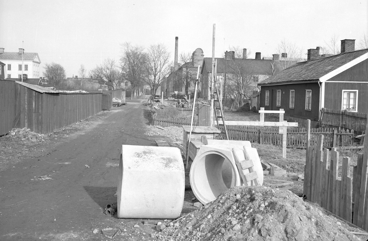 Porslinsfabriken Gefle Porslin i bakgrunden, Södertull till vänster