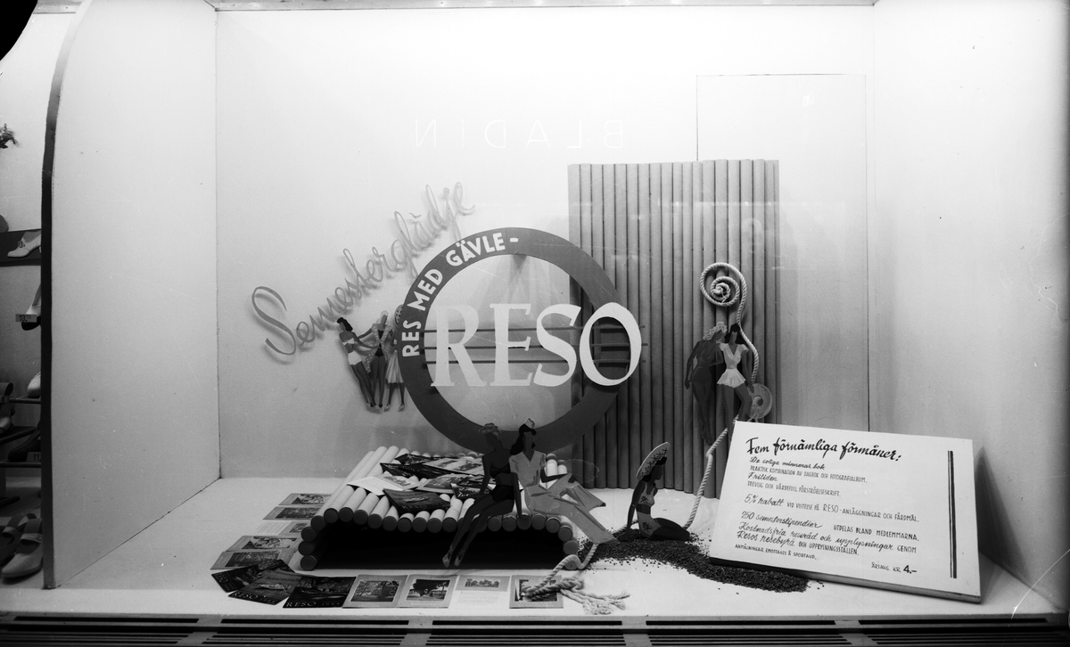 Konsum Alfa Varuhuset. Skyltfönstertemat är "Reso"
