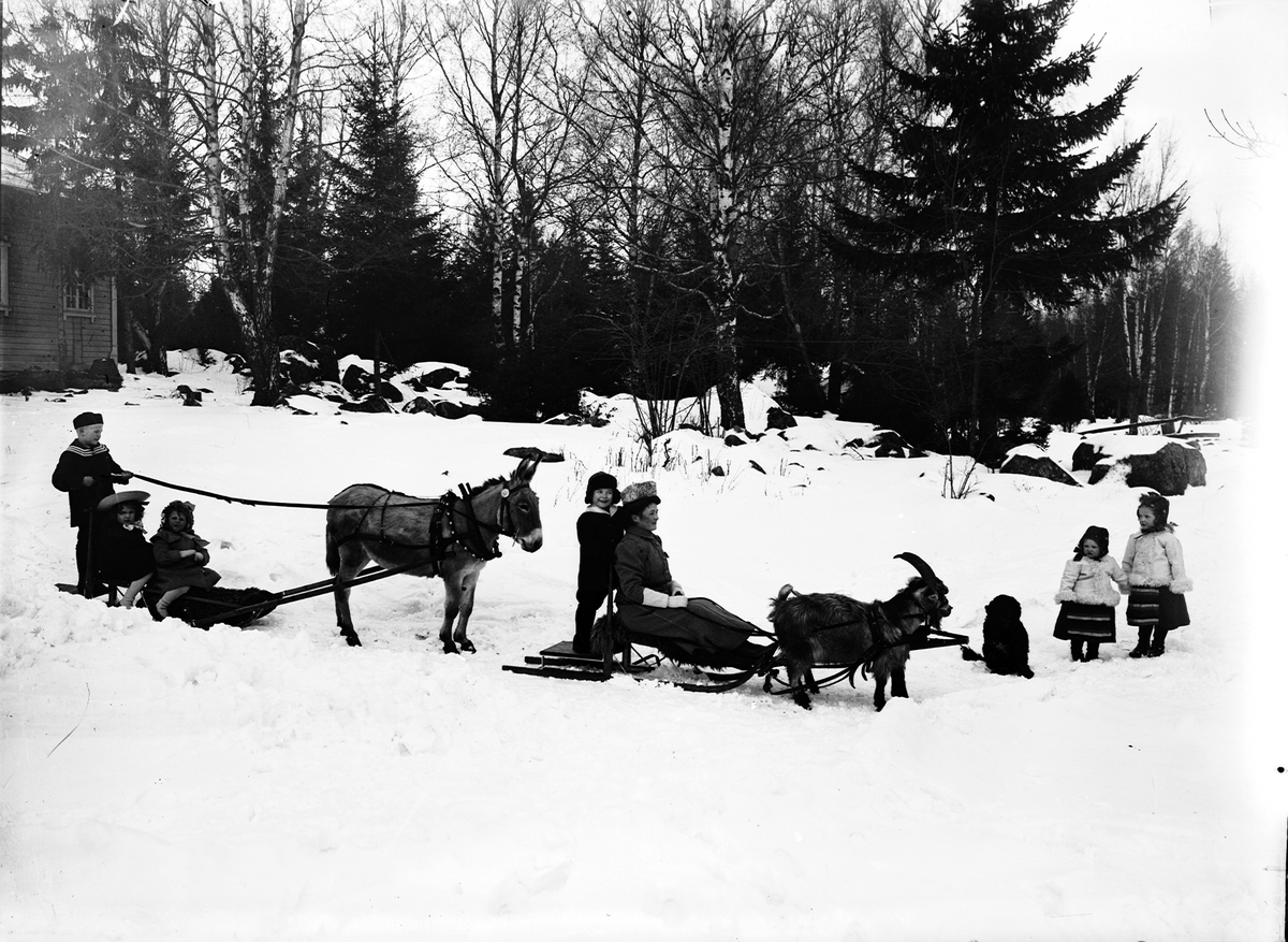 Furuvik Djurpark. Slädar dragna av åsna och get