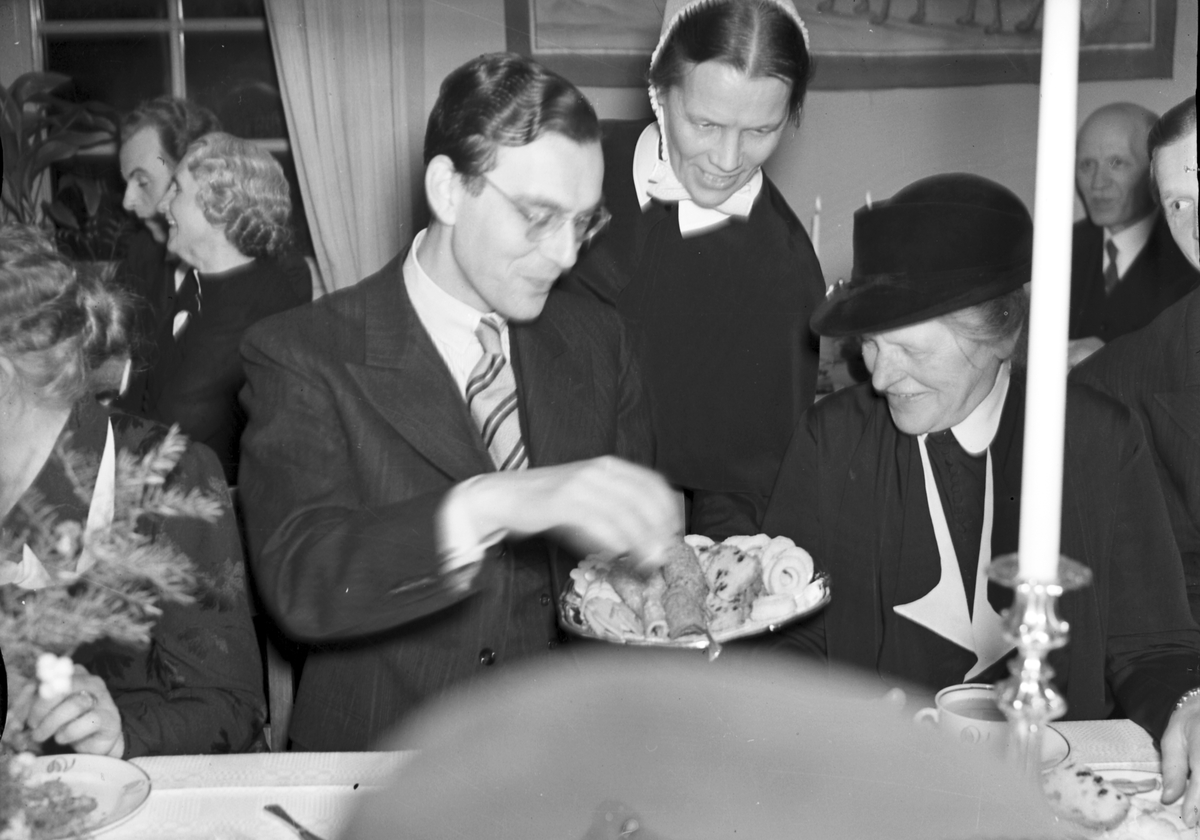 Titel: Greven Lennart Bernadotte besök i St. Ansgars hus. Beställt av: Fröken Åselius.