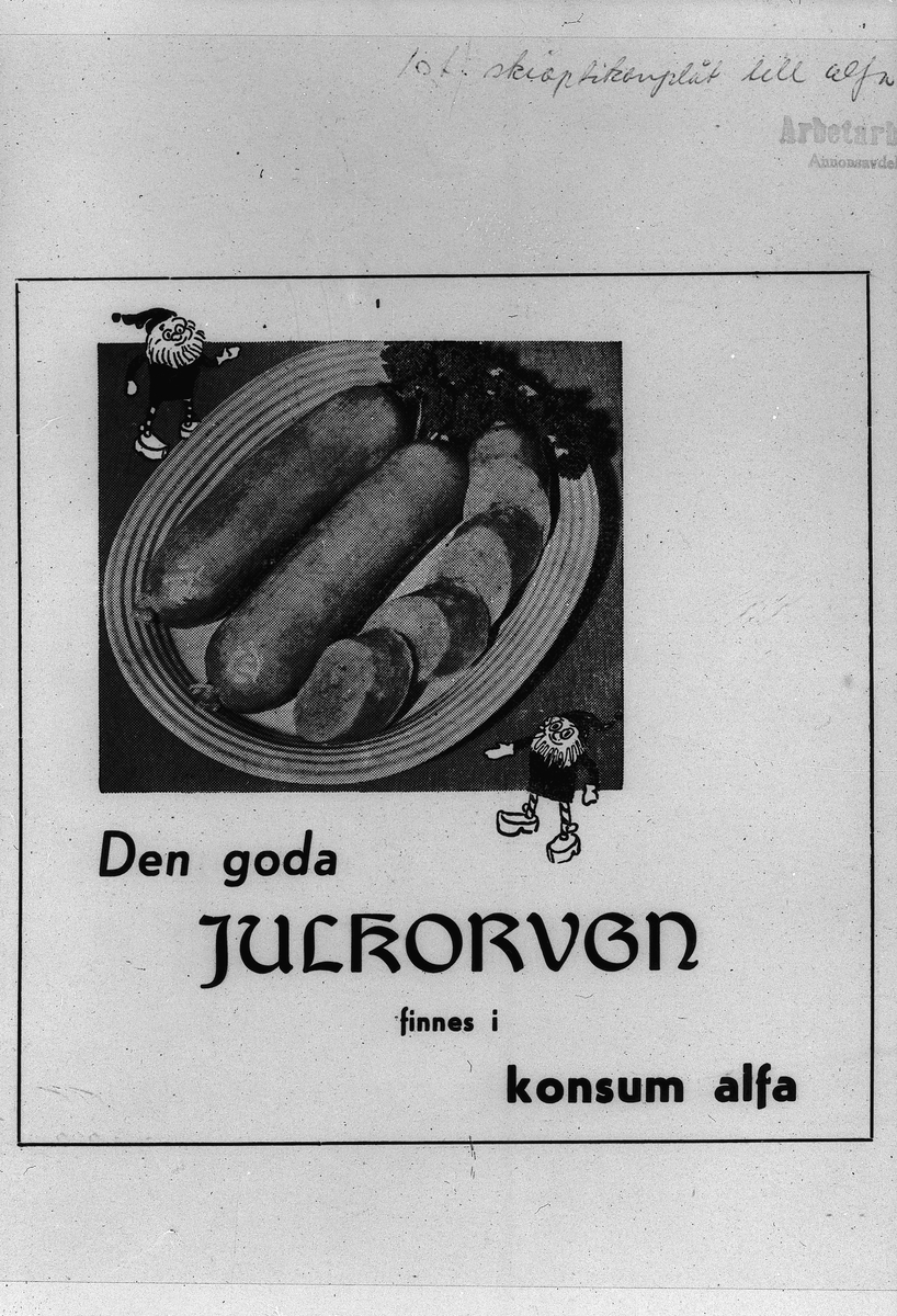 Konsum Alfa. "Den goda julkorven". Datum 12 december 1951