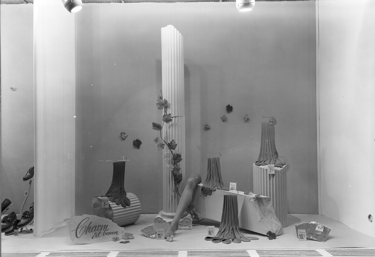 Konsum Alfa Varuhuset. Skyltfönstertema "Charm åt benen"