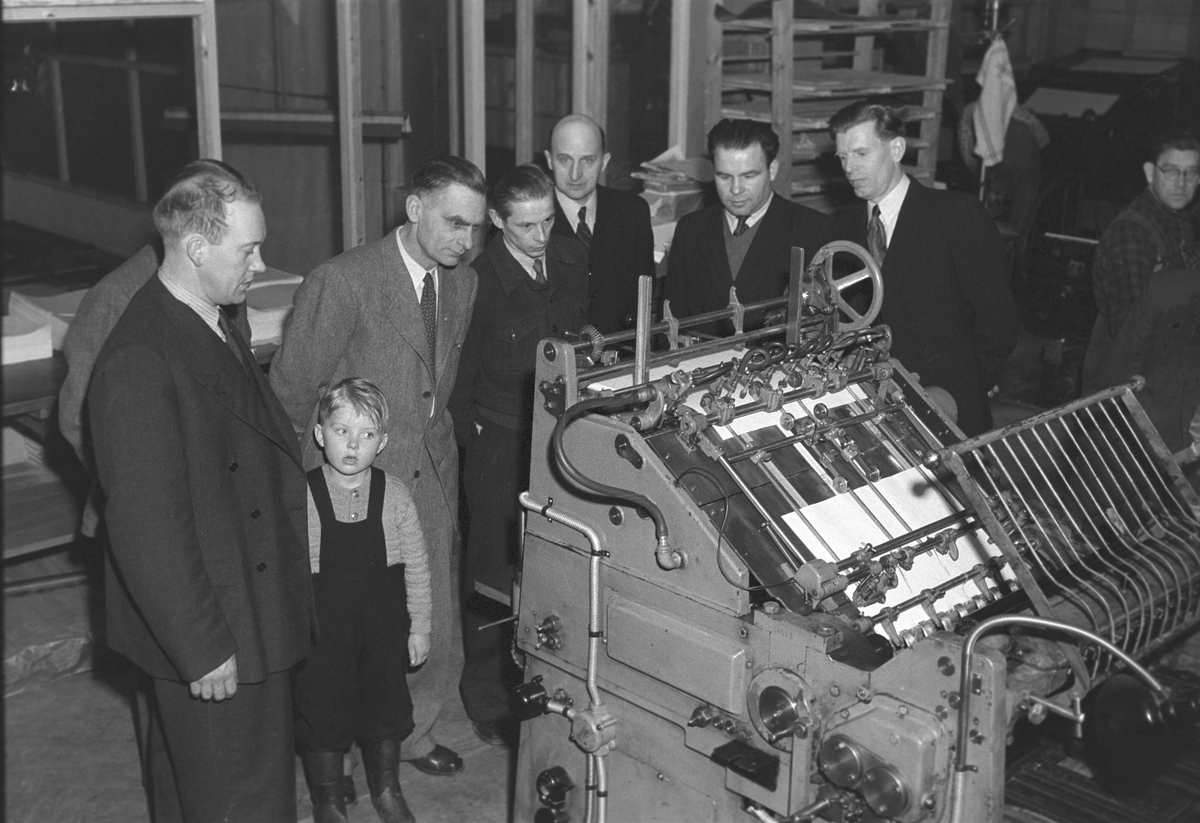 Besök på redaktionen och visning av maskin. Juli 1948.