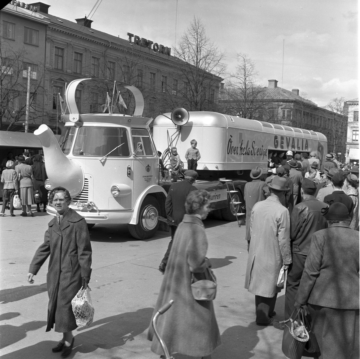 Engwall & Co. 16 maj 1956. Gevalia på busstorget, kaffeservering.