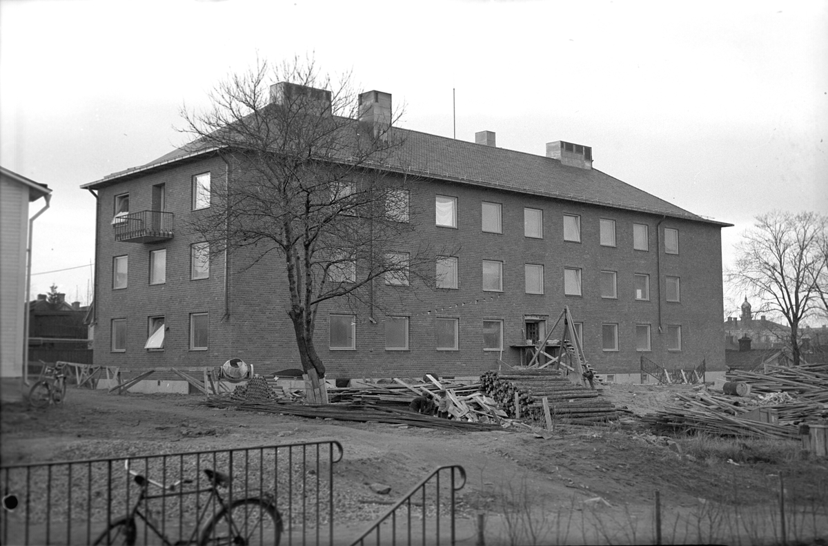 Titel: Nya Landstingshuset under arbete. 21 november 1948. Borgparken har bytt namn och har fått namnet Joe Hill-platsen.