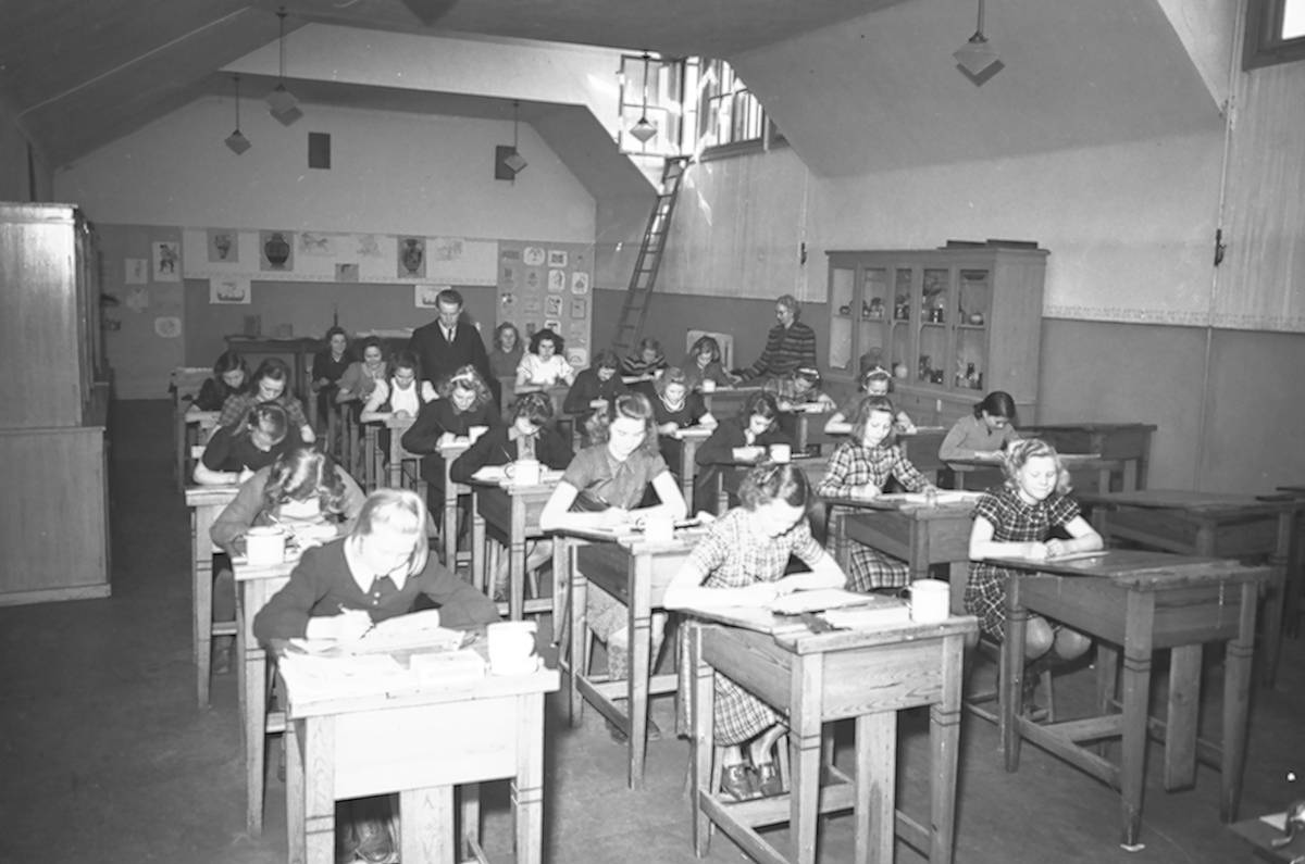 År 1942. 1842-1942 Skolan 100 år. Folkskolans jubileumsutställning.