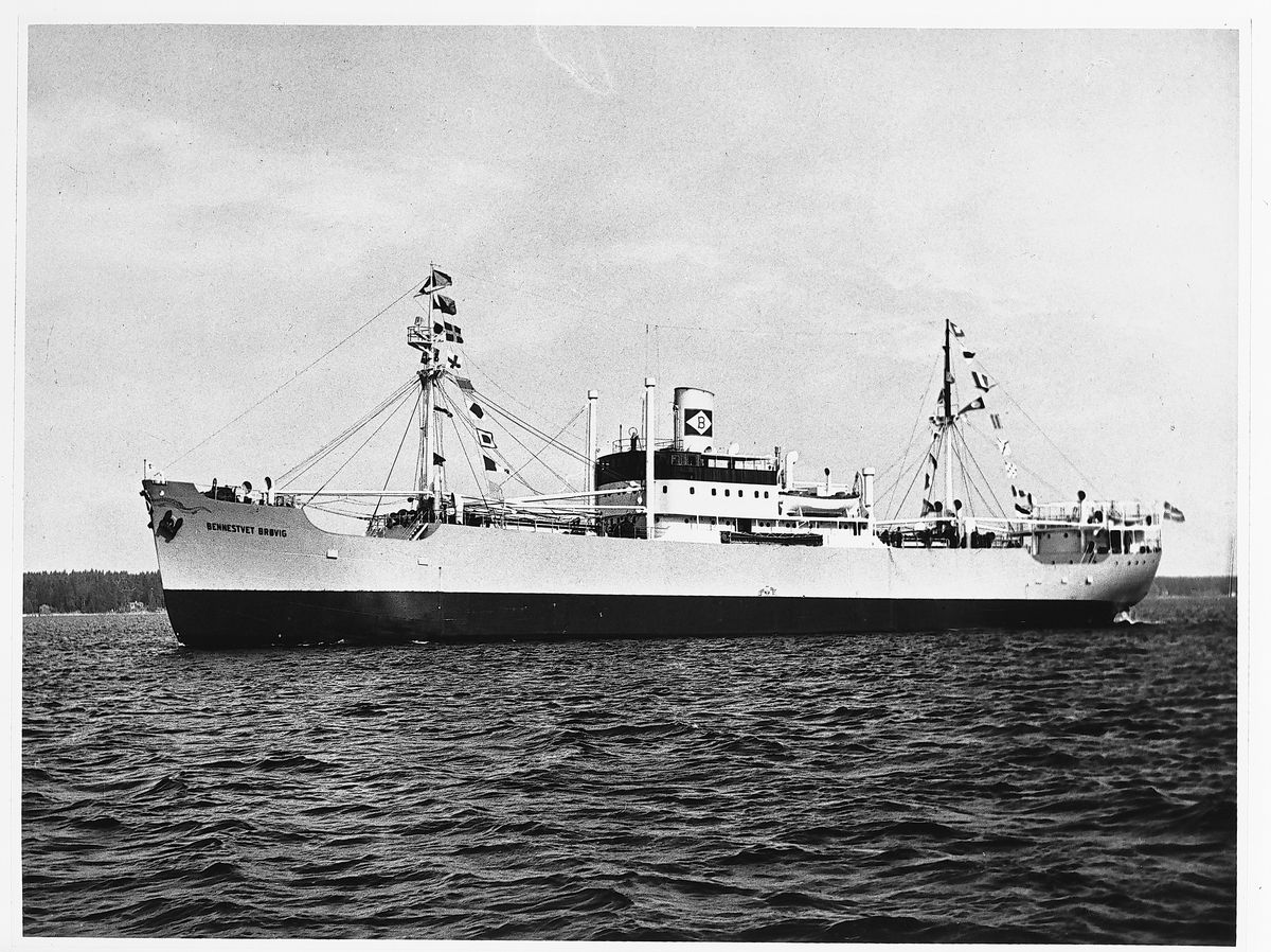 Fartyget "Bennestvet Brövig". Gävle Varv anlades 1873. Efter en konkurs 1921 bildades Gefle Varfvs och Verkstads Nya AB, som bland annat tillverkade oljecisterner och utrustningar till pappersmassefabriker. På 1940-talet återupptogs skeppsbyggeriet.