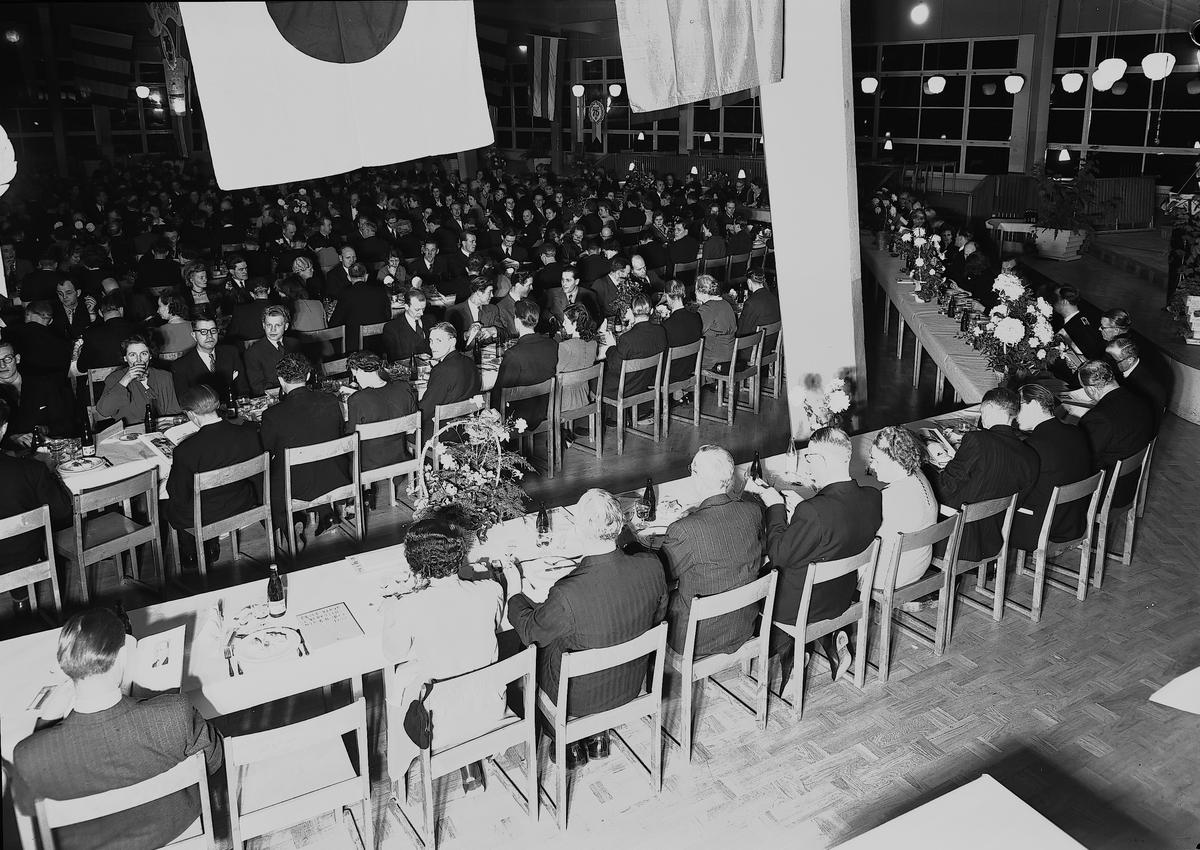 Titel: Gefle Varvs 75-årsjubileum på Rotundan, Folkparken. 12 december 1948. Gävle Varv anlades 1873. Efter en konkurs 1921 bildades Gefle Varfvs och Verkstads Nya AB.