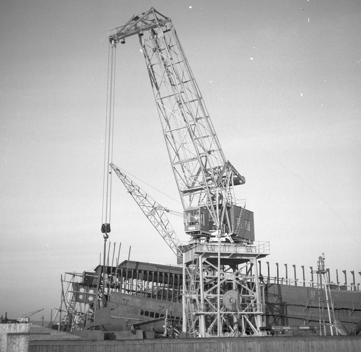 Reportage för Gefle Dagblad. 6 december 1948. Gävle Varv anlades 1873. Efter en konkurs 1921 bildades Gefle Varfvs och Verkstads Nya AB, som bland annat tillverkade oljecisterner och utrustningar till pappersmassefabriker. På 1940-talet återupptogs skeppsbyggeriet.