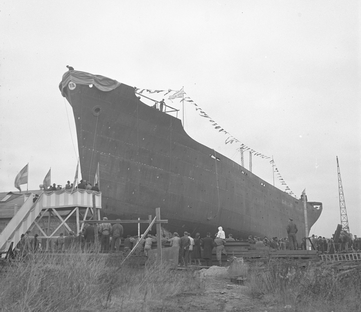 Sjösättning (Fred Olsson). Gävle Varv anlades 1873. Efter en konkurs 1921 bildades Gefle Varfvs och Verkstads Nya AB, som bland annat tillverkade oljecisterner och utrustningar till pappersmassefabriker. På 1940-talet återupptogs skeppsbyggeriet.