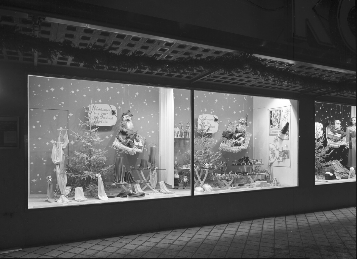 Konsum Alfa Varuhuset. Skyltfönstertema "Jultid". Datum 15 december 1949