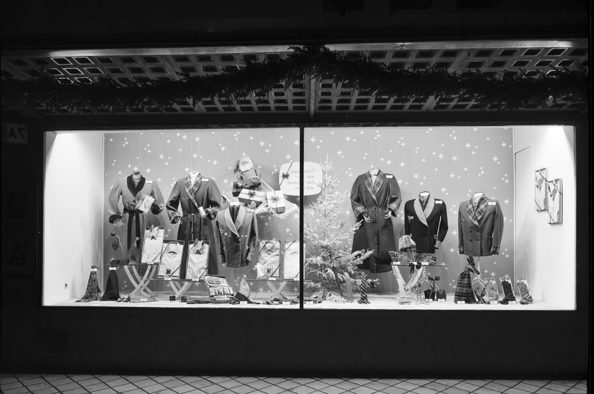 Konsum Alfa Varuhuset. Skyltfönstertema "Jultid". Datum 15 december 1949