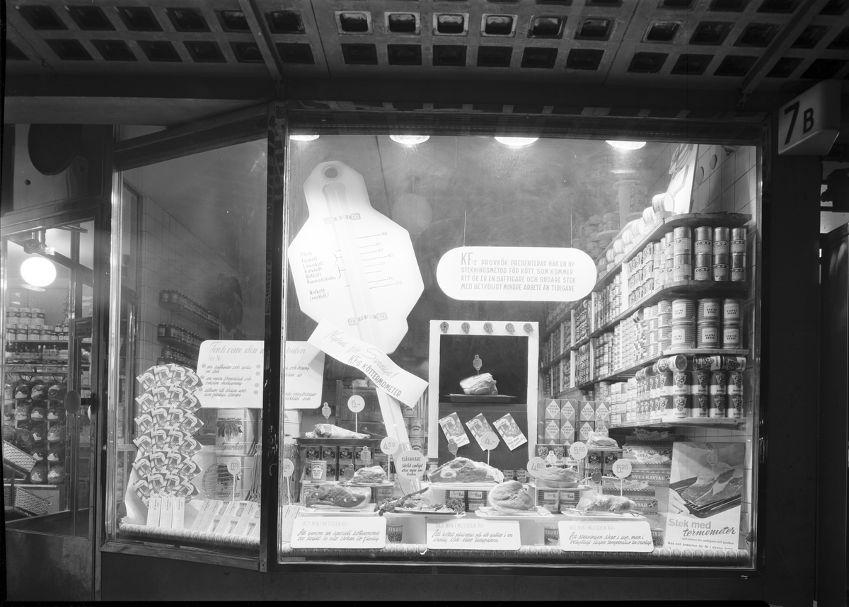 Konsum Alfa Varuhuset. Skyltfönstertema "Charkavdelningen". Datum 10 december 1949
