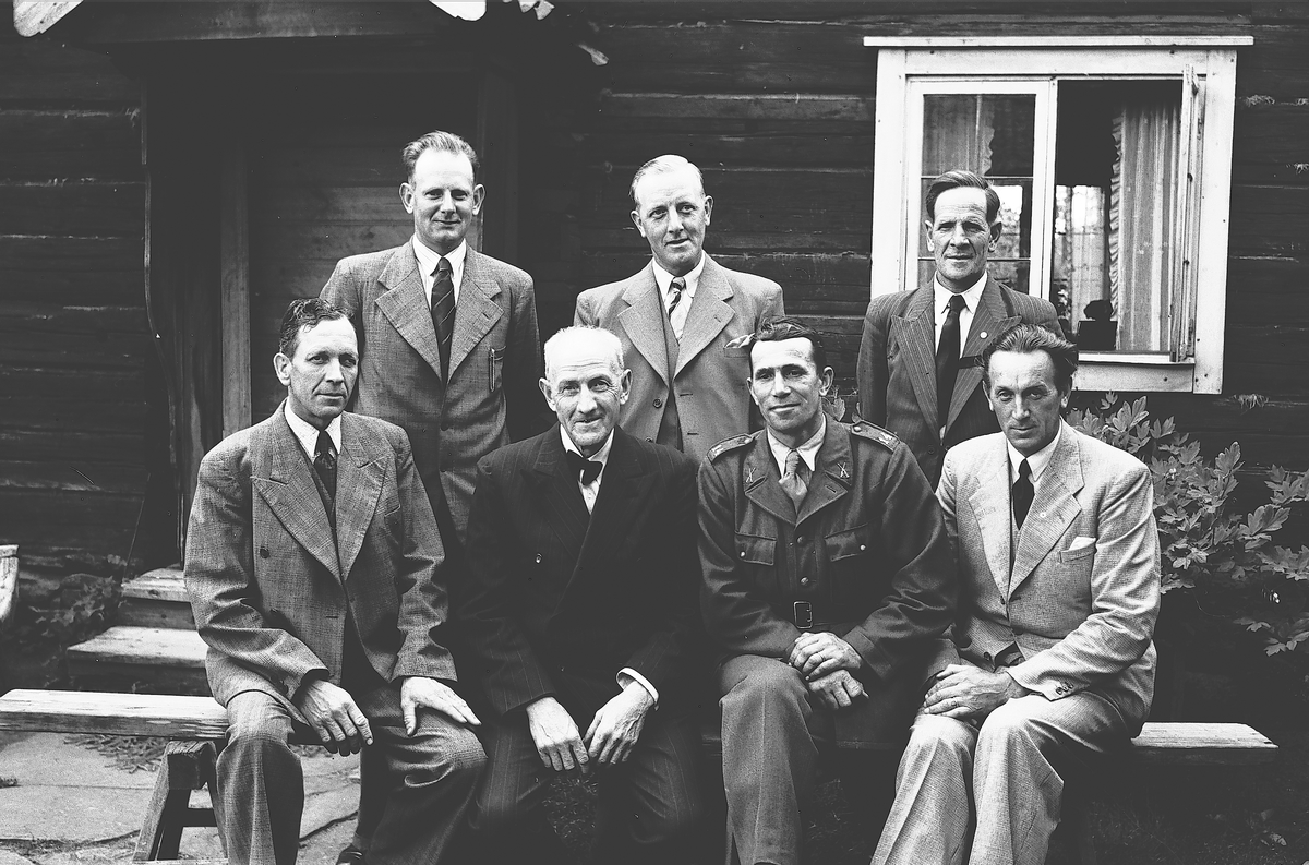 Titel: Den 9 augusti 1942. Valbo Hembygdsförening. Styrelsegruppen vid Vretas.