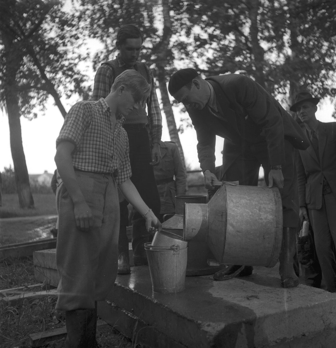Stadsträdgården inplantering av laxyngel. Juni 1949.