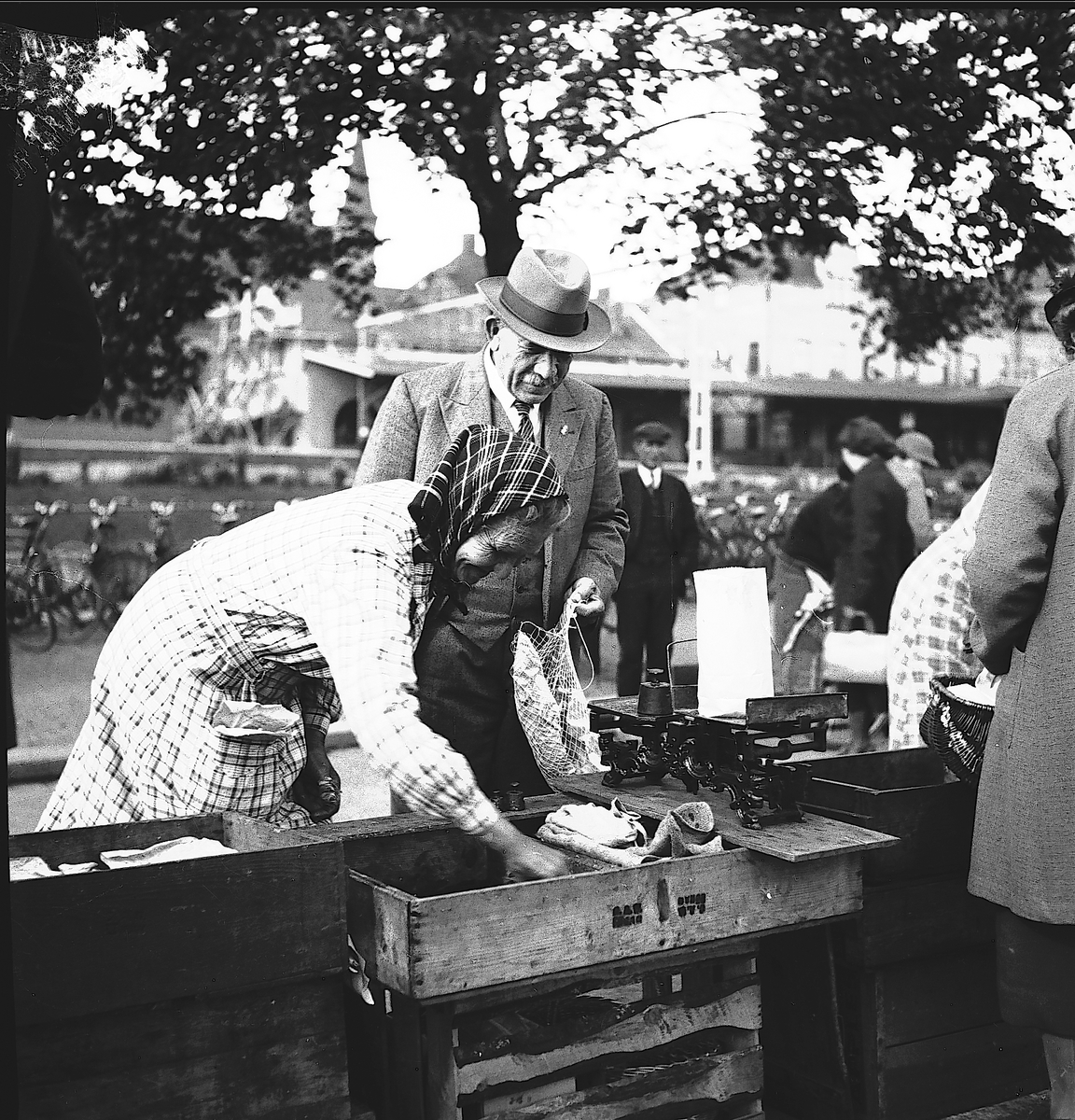 År 1938. Torghandel på Fisktorget / Hamntorget