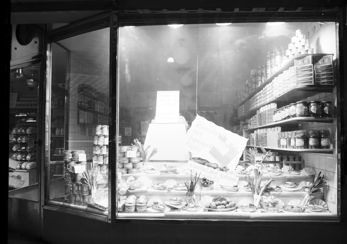 Konsum Alfa Varuhuset. Skyltfönstertema "Ransonering"
