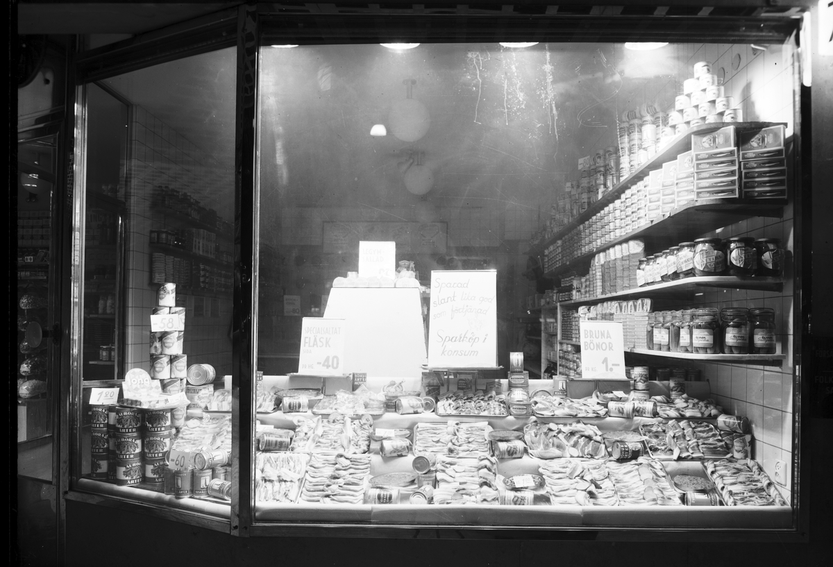 Konsum Alfa Varuhuset. Skyltfönstertema "Ransonering"
