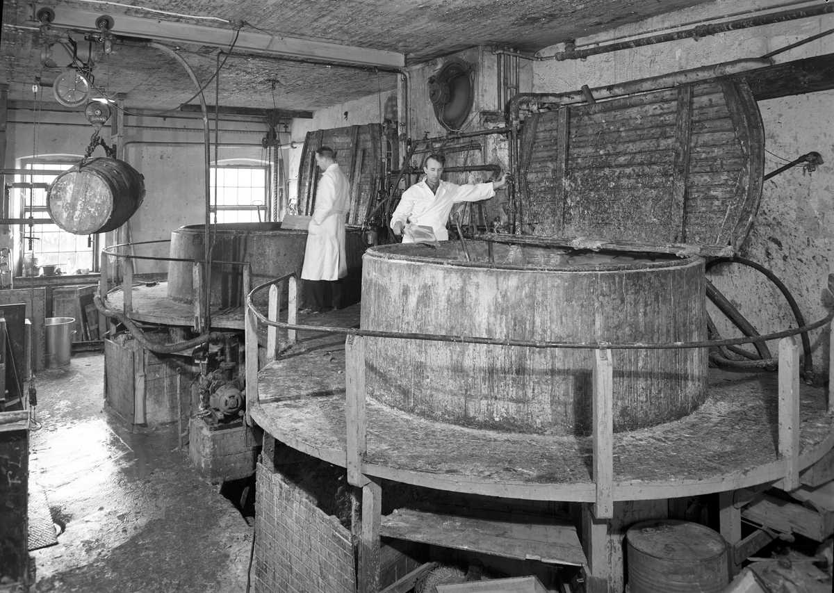Interiör från kontoret, 5 april 1946. Tekniska AB Svea grundades år 1899 av flera stora företagare i Gävle, bl.a. konsul Oscar Flemming, fabrikören Gustaf Adolf Sjöström, grosshandlare J. A. Westergren och bryggaren Wadman. Fabriken uppfördes på Ruddammsgatan 15 i centrala Gävle. Tekniska AB Swea sålde sina varor i norra och mellersta Sverige. Som mest producerades ett hundratal artiklar.
