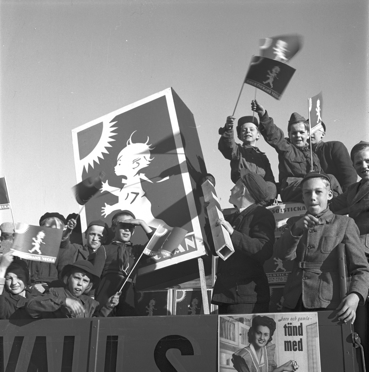 Solstickans tändstickor, tåg genom staden. 24 april 1949.