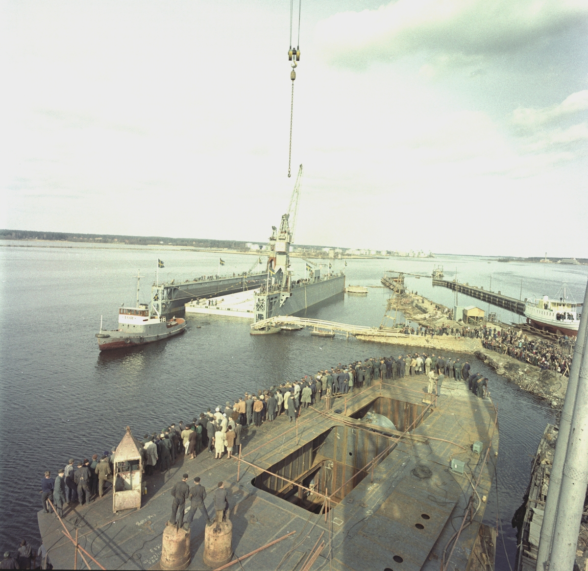 Wasakassun. 21 april 1961. Gävle Varv anlades 1873. Efter en konkurs 1921 bildades Gefle Varfvs och Verkstads Nya AB, som bland annat tillverkade oljecisterner och utrustningar till pappersmassefabriker. På 1940-talet återupptogs skeppsbyggeriet. På 1950-talet, då Korsnäs AB ägde varvet byggdes flera högsjöfartyg. I början av 1960-talet byggde varvet den ponton som regalskeppet Wasa skulle placeras på vid bärjningen.
