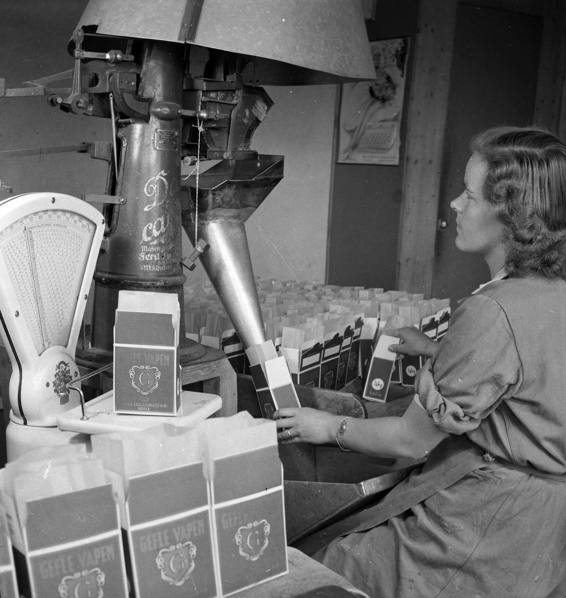 Paketering av kaffe. Juni 1945. Ericsson Ludvig & Co, Norra Skeppsbron 3, Gävle.