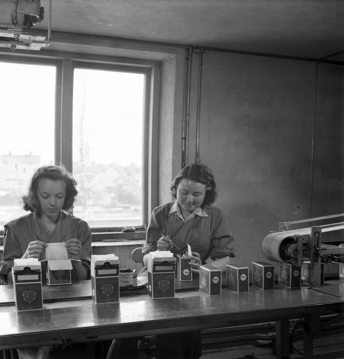Paketering av kaffe. Juni 1945. Ericsson Ludvig & Co, Norra Skeppsbron 3, Gävle.