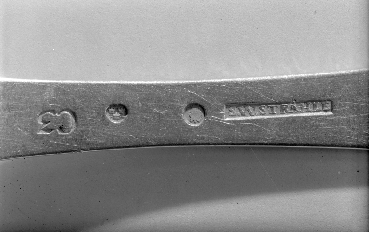 Stämpel på sked, 23 januari 1946. Beställt fil.lic. fröken Film, Skeppargatan, Gävle.
