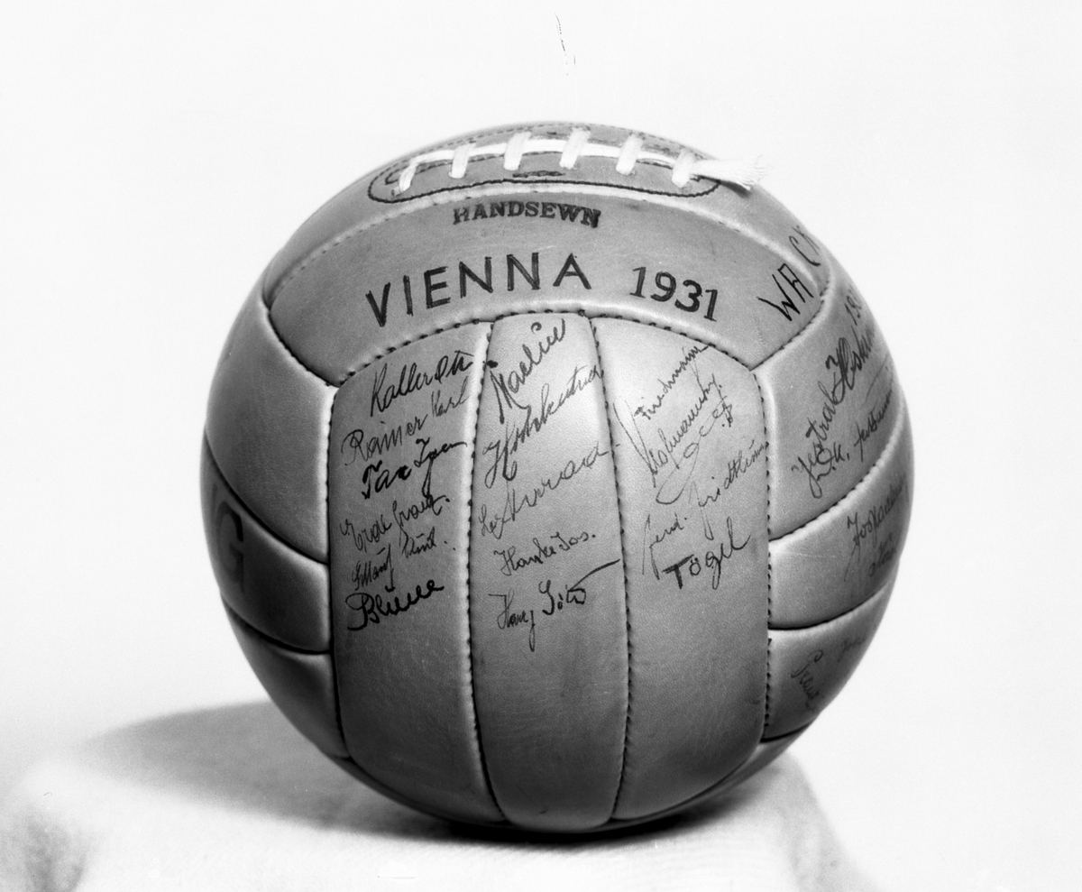Malmbergs startades 1905 av Elof Malmberg. Blev en av Sveriges ledande producenter av artiklar för idrott, jakt, fiske, skytte och friluftsliv. På bilden en fotboll med texten "Vienna, 1931" och autografer.