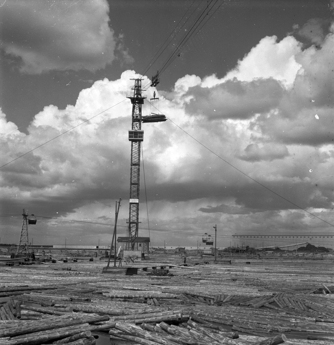 Titel: Linbana vid Korsnäs fabrik. 27 augusti 1947. Nordströms Linbanor AB, Vasagatan 16, Stockholm.